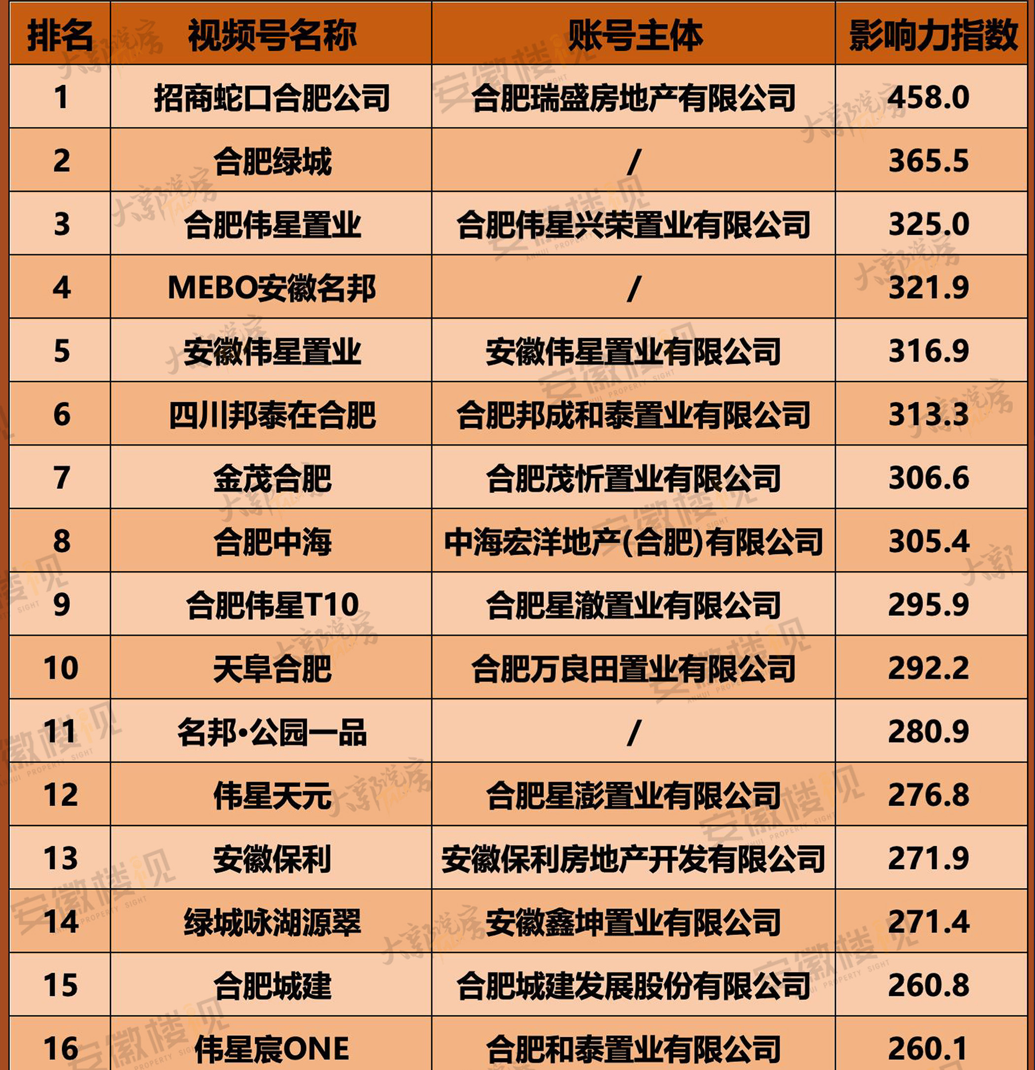 安徽房地产影响力榜单